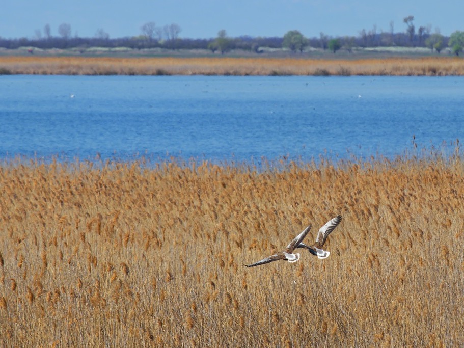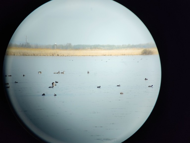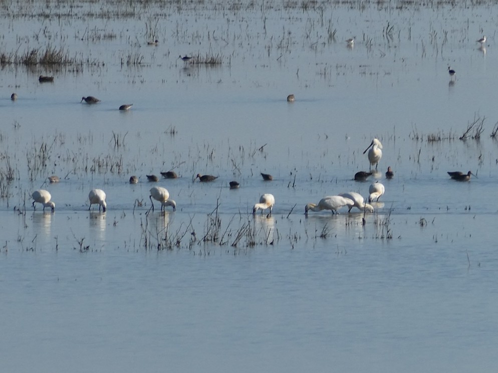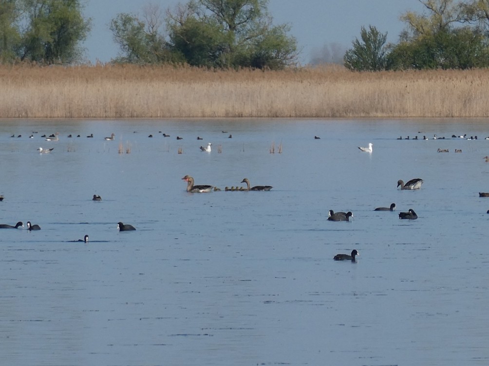 Kanalasgémek, gólyatöcsök, nyílfarkú récék, nagy pólingok, nyári ludak, nagy kócsagok, szürke gémek és még sorolhatnánk, mi mindent láttunk. Felbukkant két vörösnyakú vöcsök a tó vizén és már megfigyelhettük a kislibákat vezetgető nyári ludakat is. Hatalmas rétisas kavarta fel a madársereget, majd barna rétihéják és egy kékes rétihéja is megjelelnt.