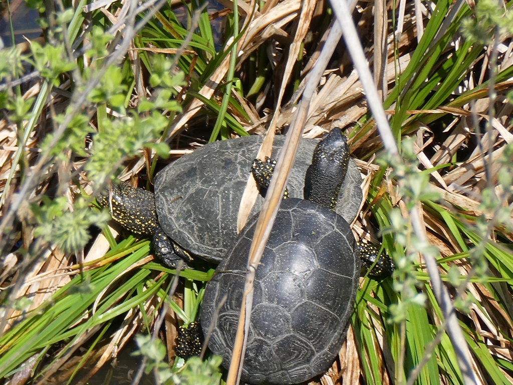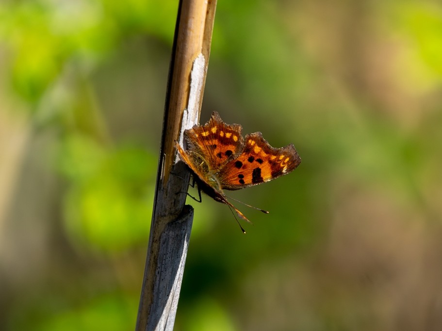 A lepkékre is figyeltünk. Elsőként C-betűs lepkék, majd néhány fürge hajnalpír lepke bukkant fel. Később napozó Atalantalepkét, átrepülő nagy rókalepkét láttunk, végül a tanösvény féltve óvott nappali lepkefaja, a farkasalmalepke két példánya is elénk került, az ügyesebbeknek sikerült is pár képet készíteni róluk.  A meleg napsütés előcsalta a mocsári teknősöket és a vízisiklókat, de barna varanggyal is találkoztunk.